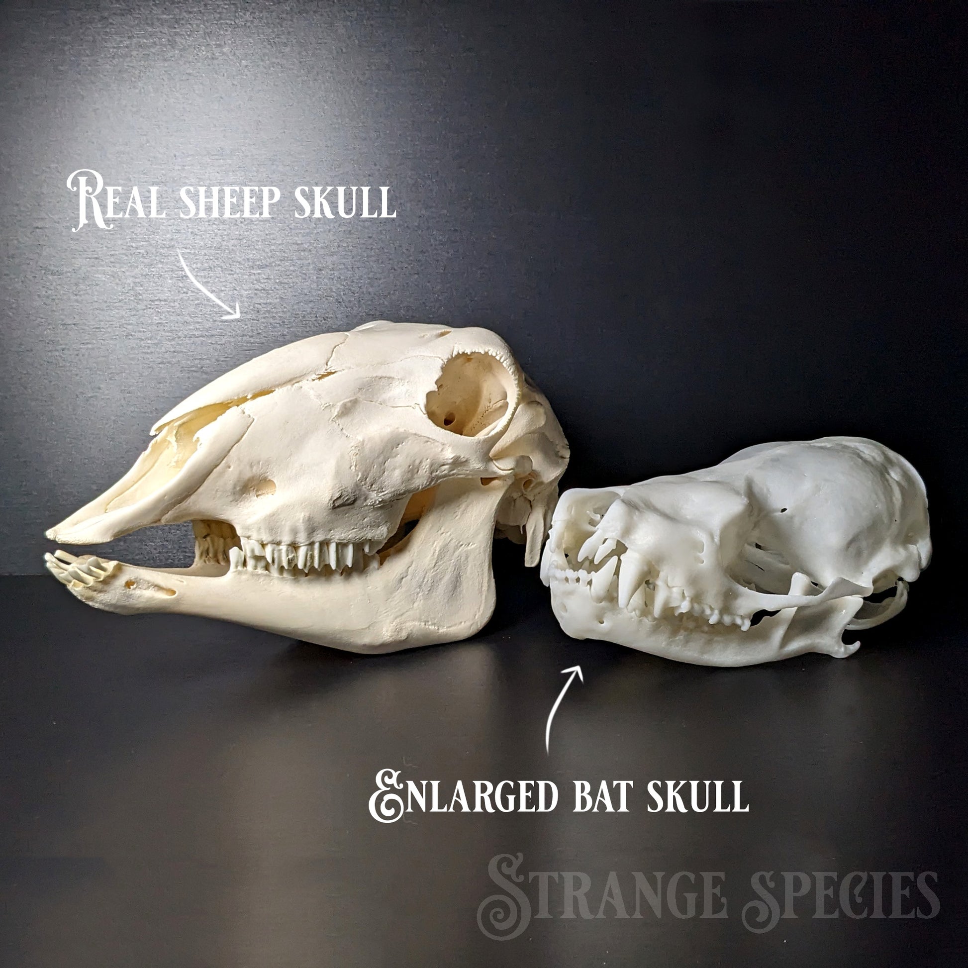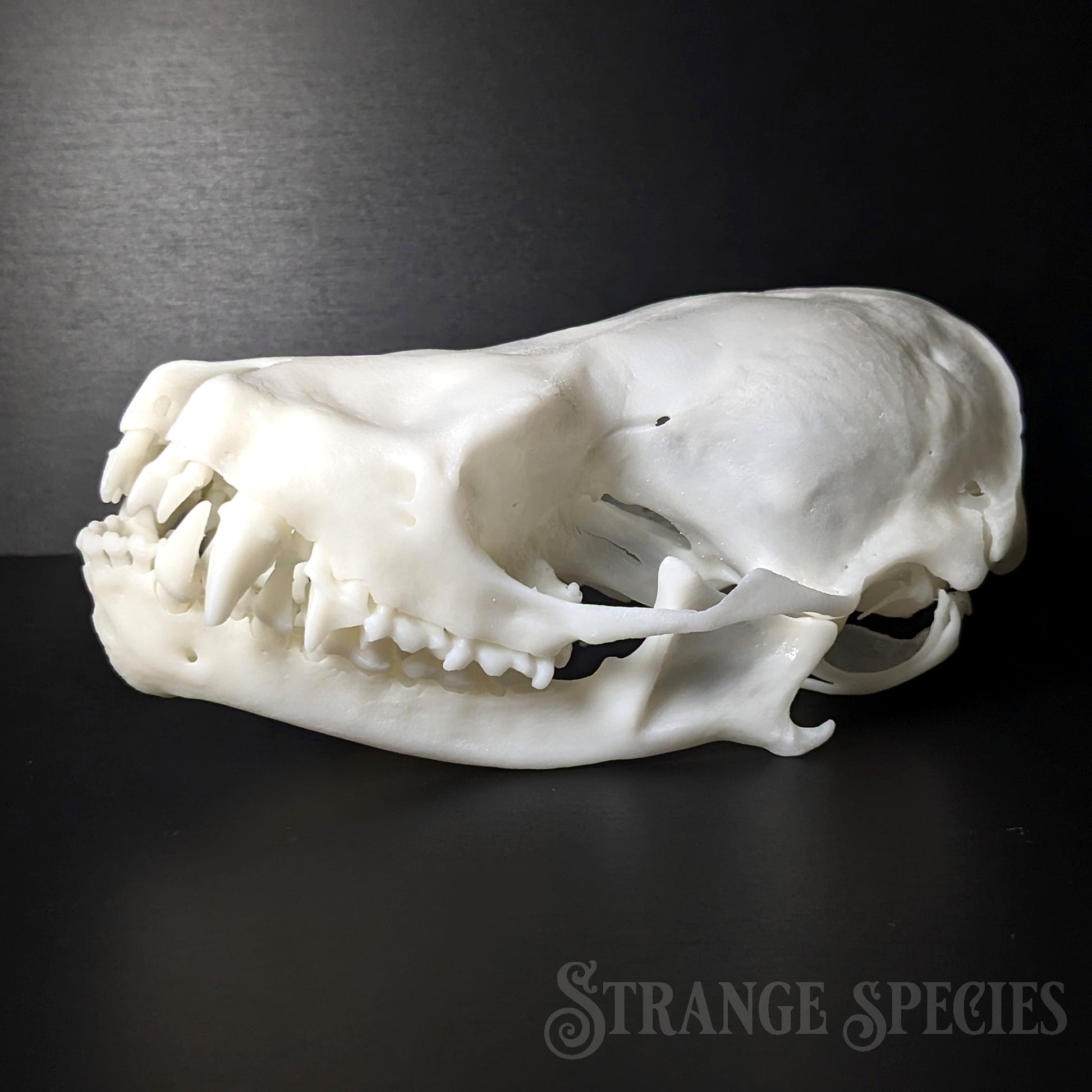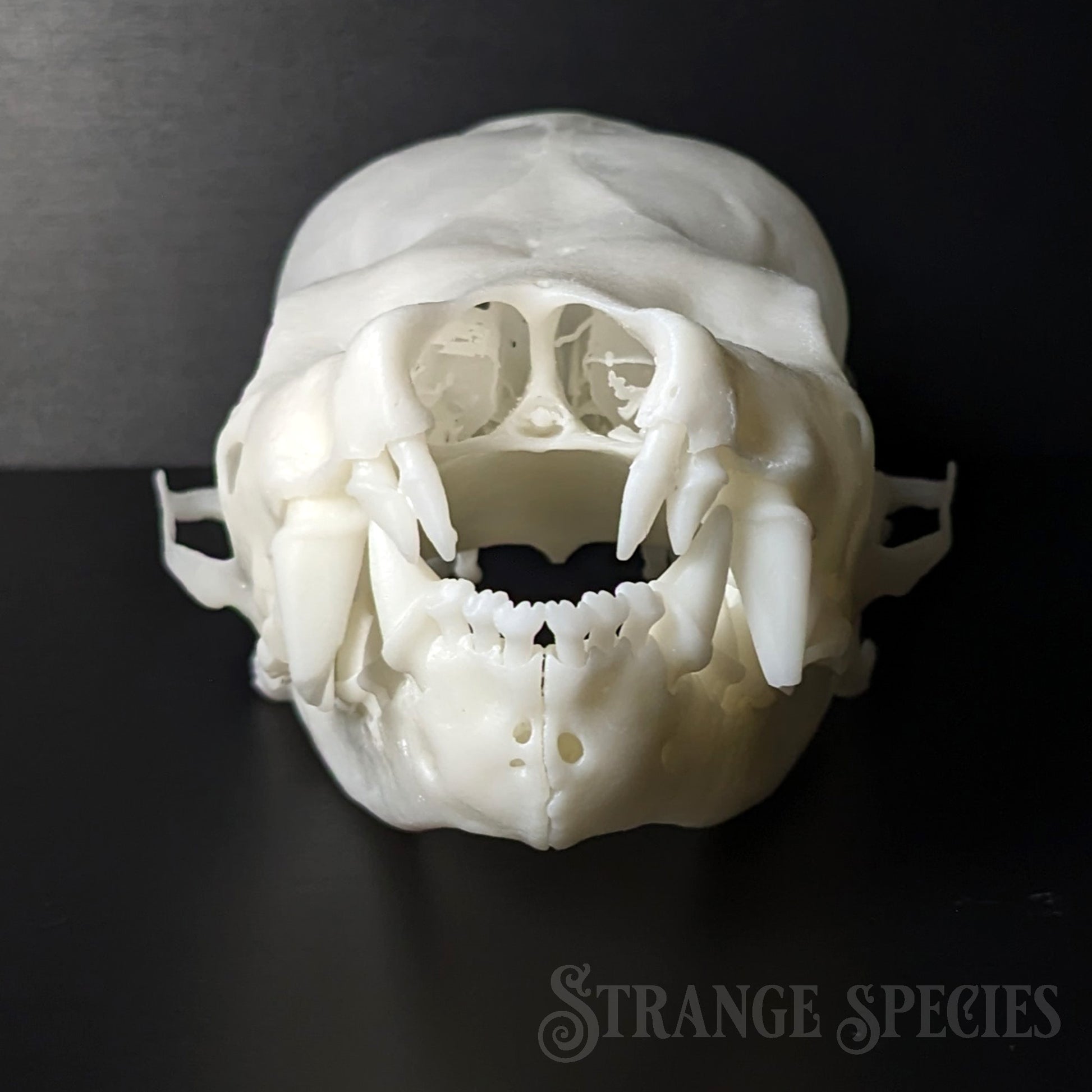 This perfectly unusual piece will add a little mystery to any bone collection, and makes a great gift for anyone interested in science, anatomy, Vulture Culture, and everything spooky. The mandible is a separate piece, which allows for study of the animal's jaw action as well as closer inspection of all parts from the palate to the dentition. The skull has an interesting flat-snouted appearance that provides an excellent contrast of evolutionary osteology compared to other available species like the vampire bat or wrinkle-faced bat.